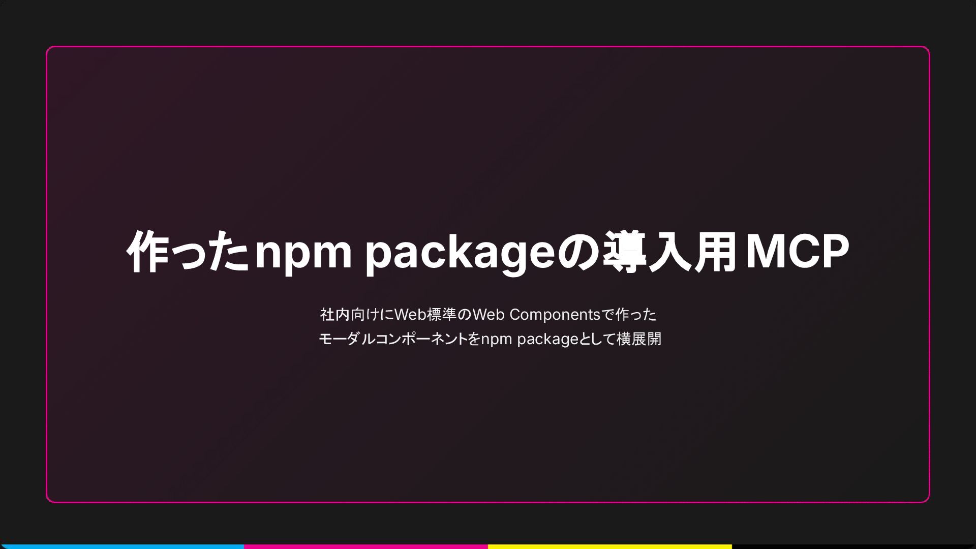 MCPの活用方法としてnpm package導入側向けのMCPを学習・用意してみたという内容です。