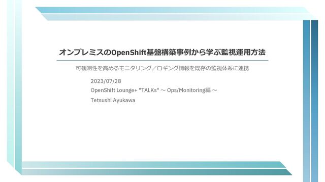 in 1.509 seconds."",""ibm_threadId"":""0000002d"",""ibm_datetime"":""2022-04- 11T17:20:09.038+0000"",""ibm_messageId"":""CWWKF0008I"",""module"":""com.ibm.ws.kernel.feature.internal.FeatureManager"",""loglevel"":""INFO"",""ibm_sequ ence"":""1649697609038_000000000002D""}" "2022-04-11T17:20:09.039474+00:00","liberty-test","mylibertyapp-ibm-websphe-0","{""type"":""liberty_message"",""host"":""mylibertyapp-ibm-websphe- 0.mylibertyapp-ibm-websphe.liberty- test.svc.cluster.local"",""ibm_userDir"":""¥/opt¥/ibm¥/wlp¥/usr¥/"",""ibm_serverName"":""defaultServer"",""message"":""CWWKF0011I: The defaultServer server is ready to run a smarter planet. The defaultServer server started in 2.445 seconds."",""ibm_threadId"":""0000002d"",""ibm_datetime"":""2022-04- 11T17:20:09.039+0000"",""ibm_messageId"":""CWWKF0011I"",""module"":""com.ibm.ws.kernel.feature.internal.FeatureManager"",""loglevel"":""AUDIT"",""ibm_seq uence"":""1649697609039_000000000002E""}" "2022-04-11T17:20:20.272646+00:00","liberty-test","mylibertyapp-ibm-websphe-0","{""type"":""liberty_accesslog"",""host"":""mylibertyapp-ibm-websphe- 0.mylibertyapp-ibm-websphe.liberty- test.svc.cluster.local"",""ibm_userDir"":""¥/opt¥/ibm¥/wlp¥/usr¥/"",""ibm_serverName"":""defaultServer"",""ibm_remoteHost"":""10.131.2.1"",""ibm_requestP rotocol"":""HTTP¥/1.1"",""ibm_requestHost"":""10.131.2.83"",""ibm_bytesReceived"":13283,""ibm_requestMethod"":""GET"",""ibm_requestPort"":""9080"",""ibm_ elapsedTime"":1291,""ibm_responseCode"":200,""ibm_uriPath"":""¥/"",""ibm_userAgent"":""kube-probe¥/1.19"",""ibm_datetime"":""2022-04- 11T17:20:20.272+0000"",""ibm_sequence"":""1649697620271_0000000000003""}" "2022-04-11T17:20:06.461657+00:00","liberty-test","mylibertyapp-ibm-websphe-0","" "2022-04-11T17:20:07.453593+00:00","liberty-test","mylibertyapp-ibm-websphe-0","{""type"":""liberty_message"",""host"":""mylibertyapp-ibm-websphe- 0.mylibertyapp-ibm-websphe.liberty- test.svc.cluster.local"",""ibm_userDir"":""¥/opt¥/ibm¥/wlp¥/usr¥/"",""ibm_serverName"":""defaultServer"",""message"":""CWWKG0093A: Processing configuration drop-ins resource: ¥/opt¥/ibm¥/wlp¥/usr¥/servers¥/defaultServer¥/configDropins¥/defaults¥/keystore.xml"",""ibm_threadId"":""00000024"",""ibm_datetime"":""2022-04- 11T17:20:07.451+0000"",""ibm_messageId"":""CWWKG0093A"",""module"":""com.ibm.ws.config.xml.internal.ServerXMLConfiguration"",""loglevel"":""AUDIT"",""ibm _sequence"":""1649697607451_0000000000002""}" Elasticsearch APIからログを取得するスクリプトの出⼒例 (例) 上述で取得した値を元に、監視、または保管⽤のログファイルを作成 (要件に応じてカスタマイズしたログファイル)