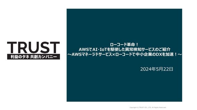 セッション2:ローコード革命!AWSでAI・IoTを駆使した異常検知サービスのご紹介