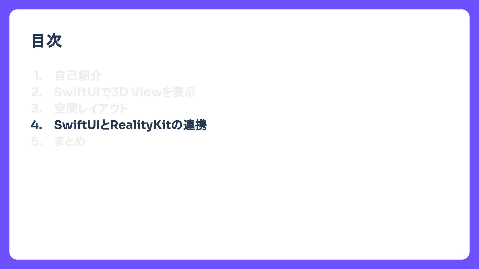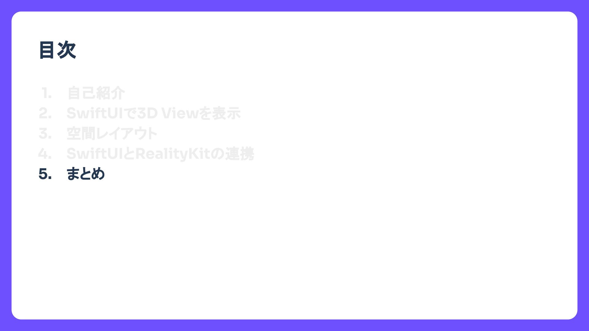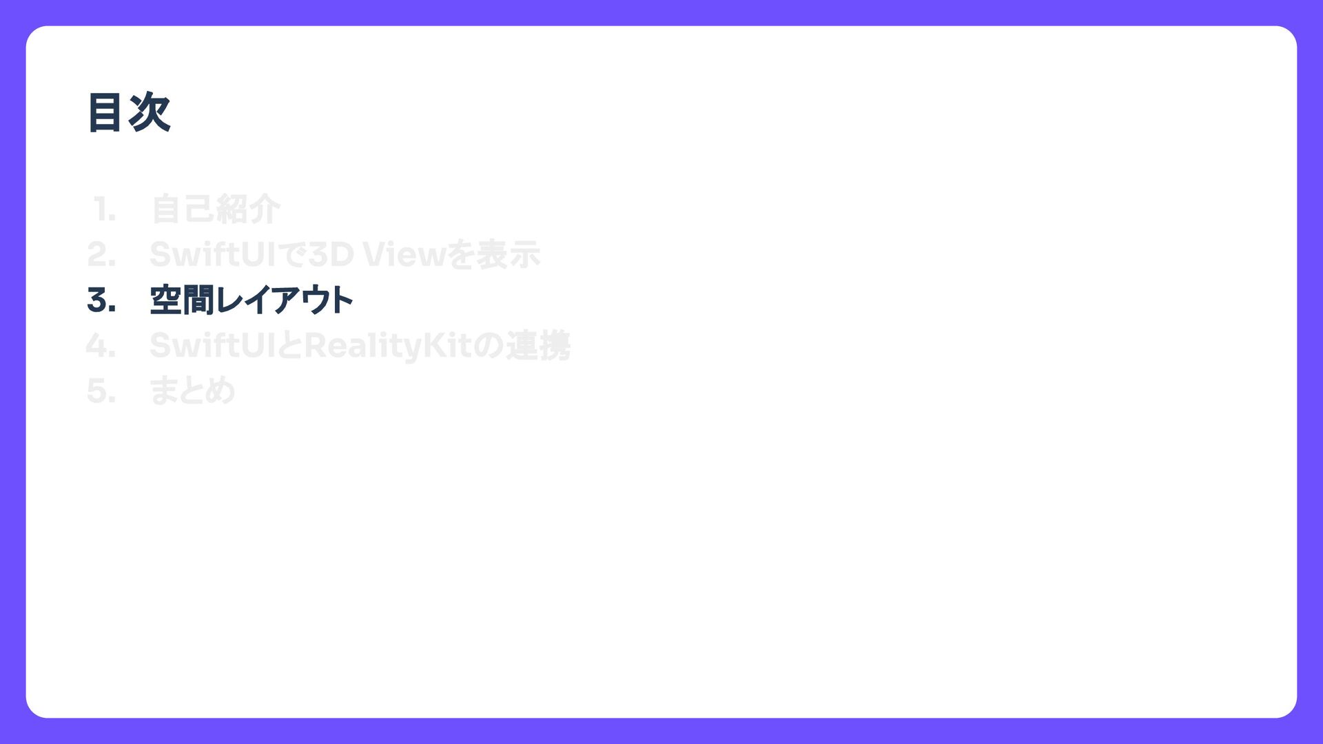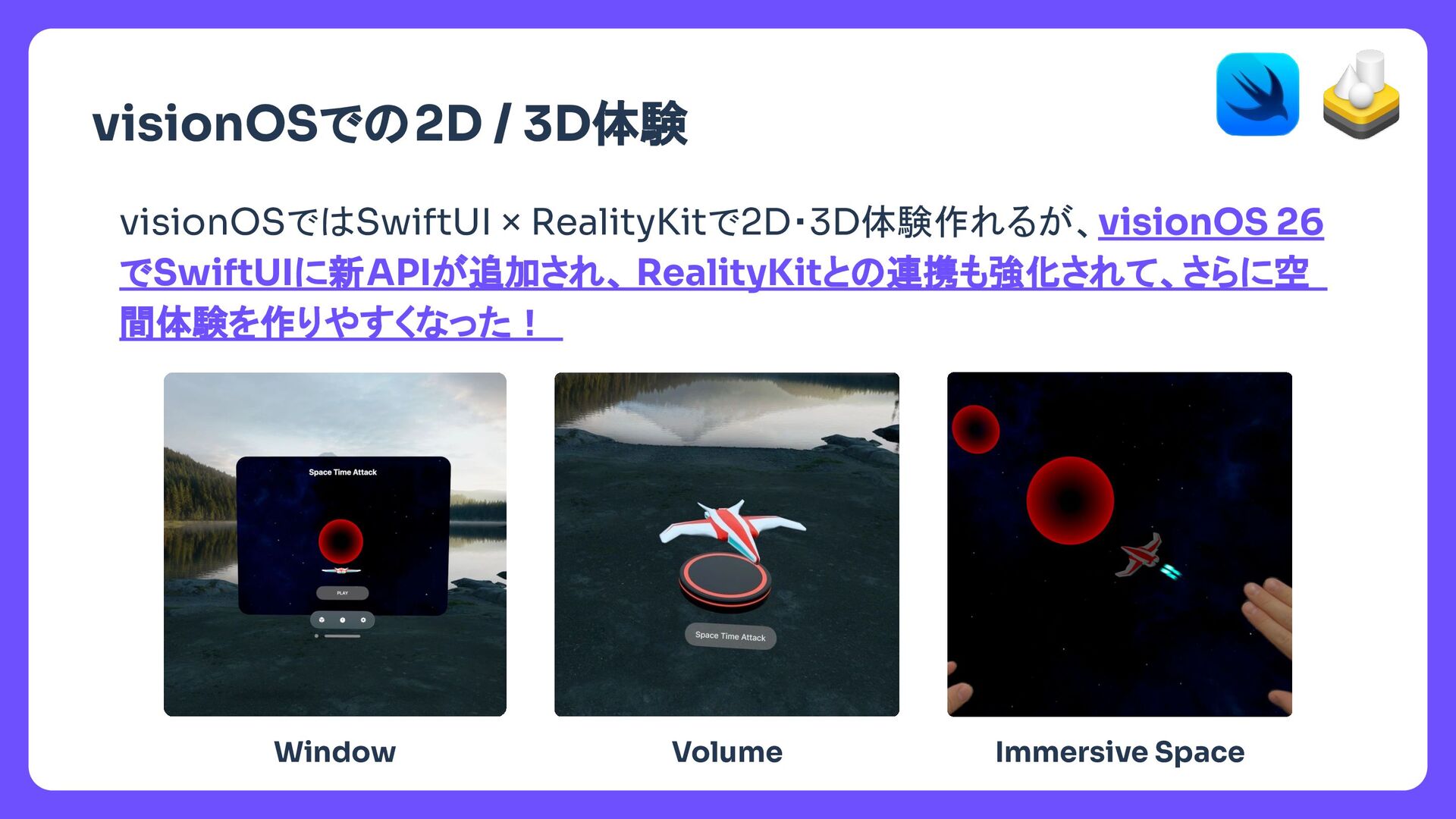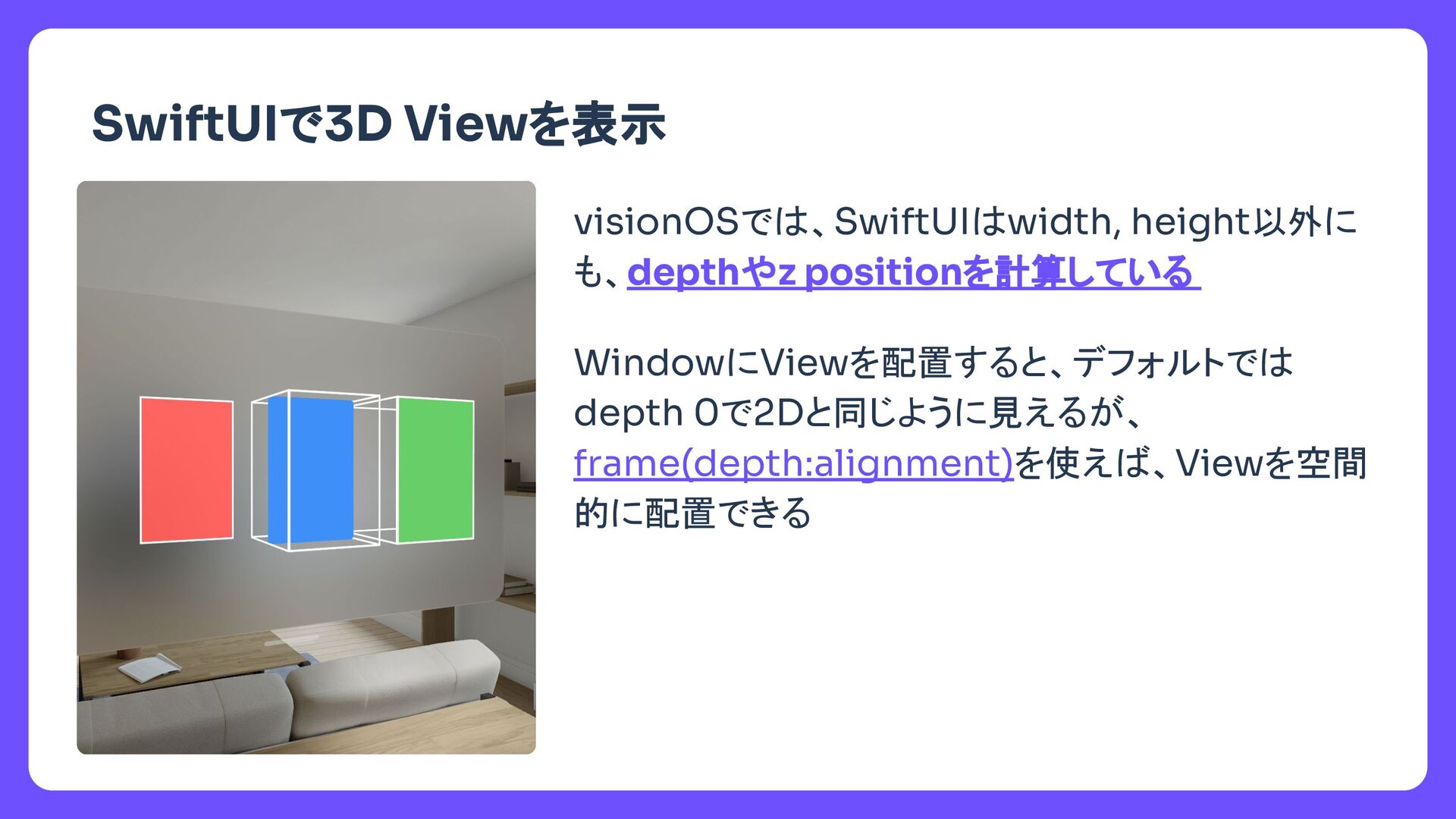.primaryRotation, .secondaryRotation, .scale, ]) // RealityKit RealityView { content in if let robot = try? await Entity(named: "Toy_Robot", in: realityKitContentBundle) { ManipulationComponent.configureEntity( robot, hoverEffect: .spotlight(.init(color: .red)), allowedInputTypes: .all, collisionShapes: [.generateBox(size: .init(0.5, 0.5, 0.5))] ) content.add(robot) } } .realityViewLayoutBehavior(.centered) ManipulationComponent CollisionComponent InputTargetComponent HoverEffectComponent を自動で追加してくれる