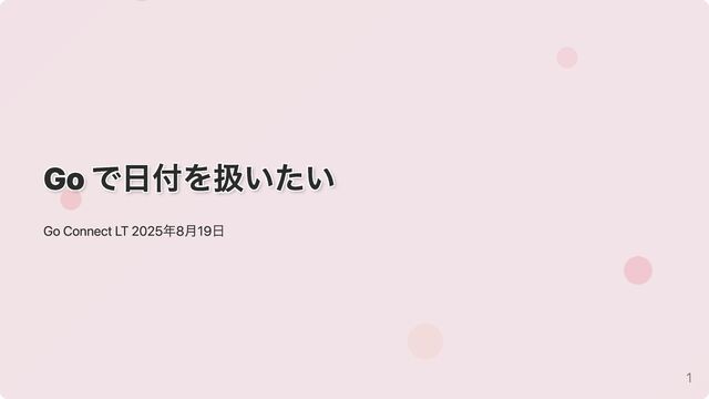 Go で日付を扱いたい Go で日付を扱いたい Go で日付を扱いたい Go で日付を扱いたい Go で日付を扱いたい Go Connect LT 2025年8月19日 1