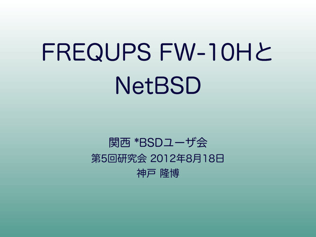 関西*BSDユーザ会の2012年第5回研究会の発表で使用した資料です。