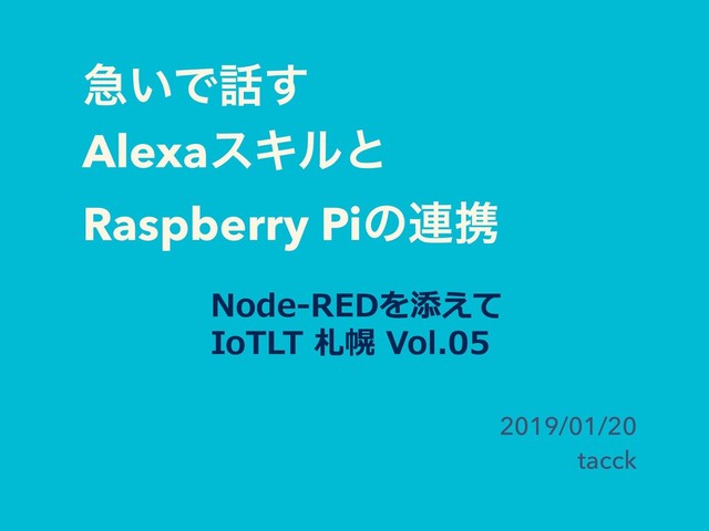 ٸ͍Ͱ͢ AlexaεΩϧͱ Raspberry Piͷ࿈ܞ 2019/01/20 tacck Node-REDを添えて IoTLT 札幌 Vol.05