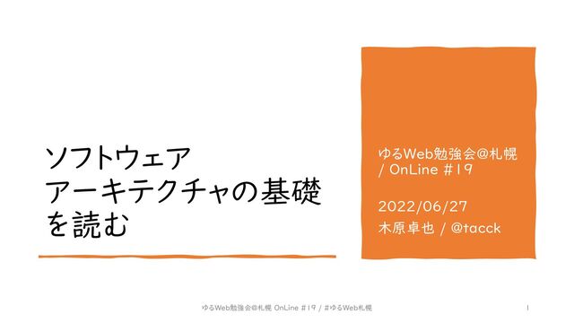 ソフトウェア アーキテクチャの基礎 を読む ゆるWeb勉強会@札幌 / OnLine #19 2022/06/27 木原卓也 /