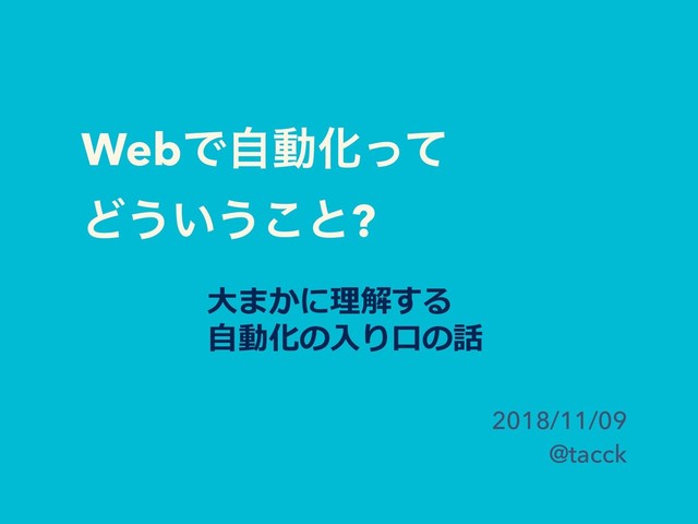 WebͰࣗಈԽͬͯ Ͳ͏͍͏͜ͱ? 2018/11/09 @tacck ⼤まかに理解する ⾃動化の⼊り⼝の話