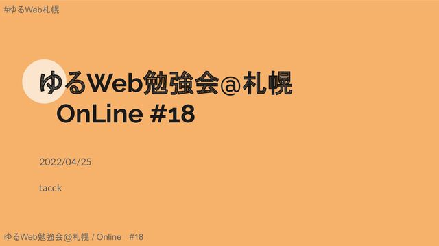 ゆるWeb勉強会@札幌 第18回の挨拶スライド。 https://mild-web-sap.connpass.com/event/244274/ https://youtu.be/8sj0yv1xPp4