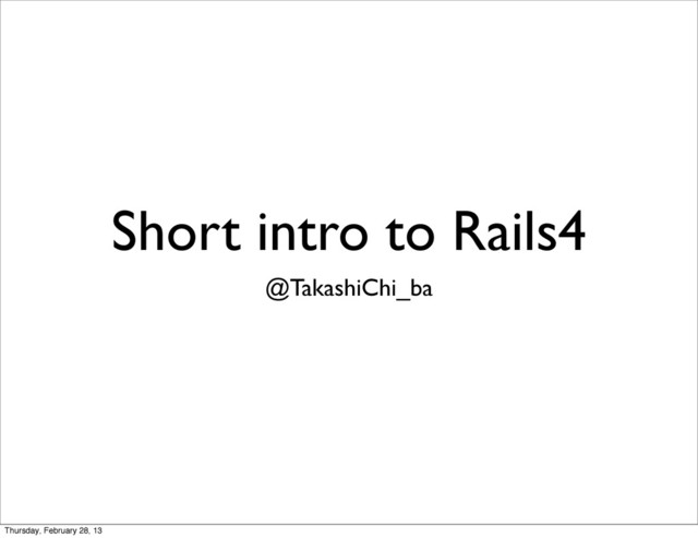 Short intro to Rails4 @TakashiChi_ba Thursday, February 28, 13