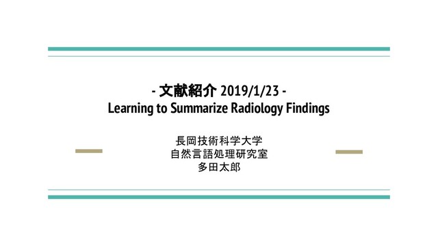 Erkan and Radev(2004) 3.Pointer-Generator: See et al. (2017) (3.のみfindings section,background sectionsとfindings sectionを使う2通り) 評価 ROUGE-1, ROUGE-2, ROUGE-L 単語ベクトル Glove 4.5 million レポート, 100 dim 11