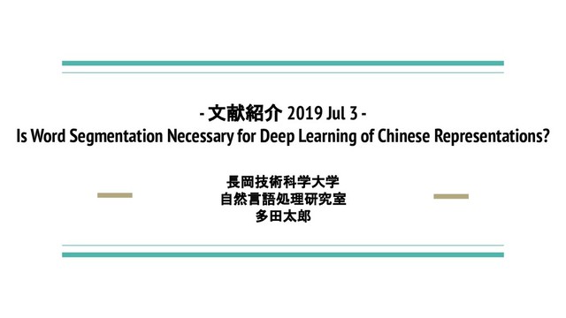 for Deep Learning of Chinese Representations? 長岡技術科学大学 自然言語処理研究室 多田太郎