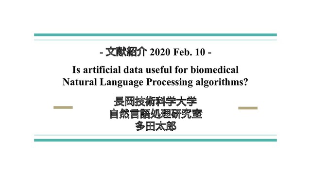 for biomedical Natural Language Processing algorithms? 長岡技術科学大学 自然言語処理研究室 多田太郎