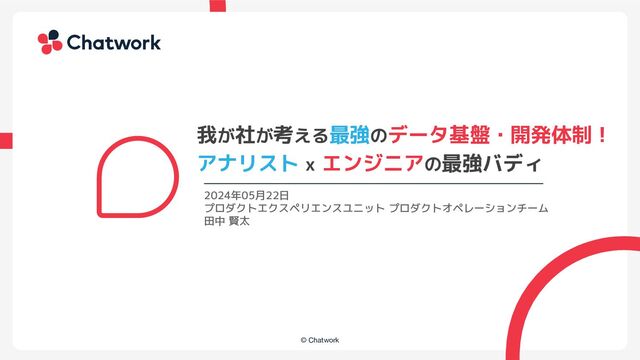 © Chatwork 我が社が考える最強のデータ基盤・開発体制! アナリスト x エンジニアの最強バディ 2024年05月22日 プロダクトエクスペリエンスユニット プロダクトオペレーションチーム