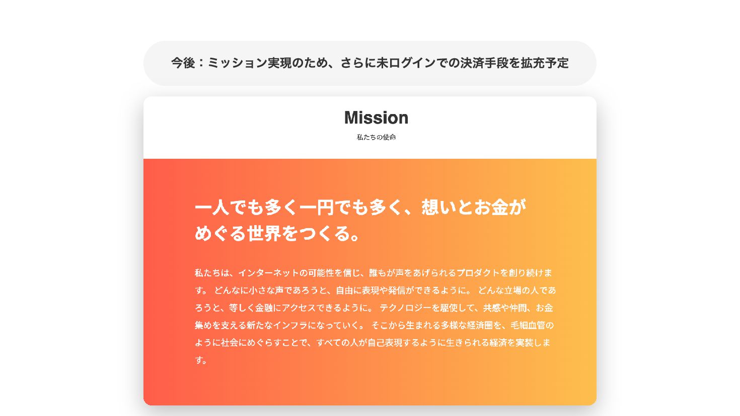 今後:ミッション実現のため、さらに未ログインでの決済手段を拡充予定
