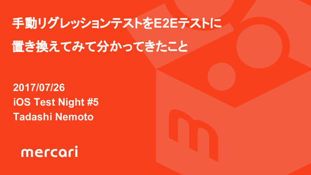 2017/07/26 iOS Test Night #5 Tadashi Nemoto 手動リグレッションテストをE2Eテストに 置き換えてみて分かってきたこと