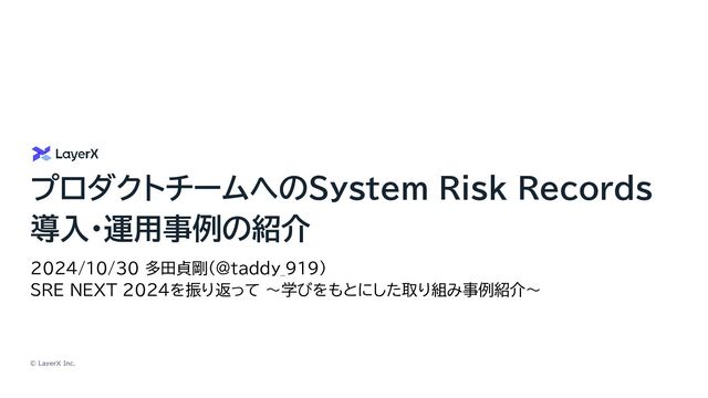 © LayerX Inc. 17 • SRE NEXT 2024で学んだ、System Risk Recordsを自社に