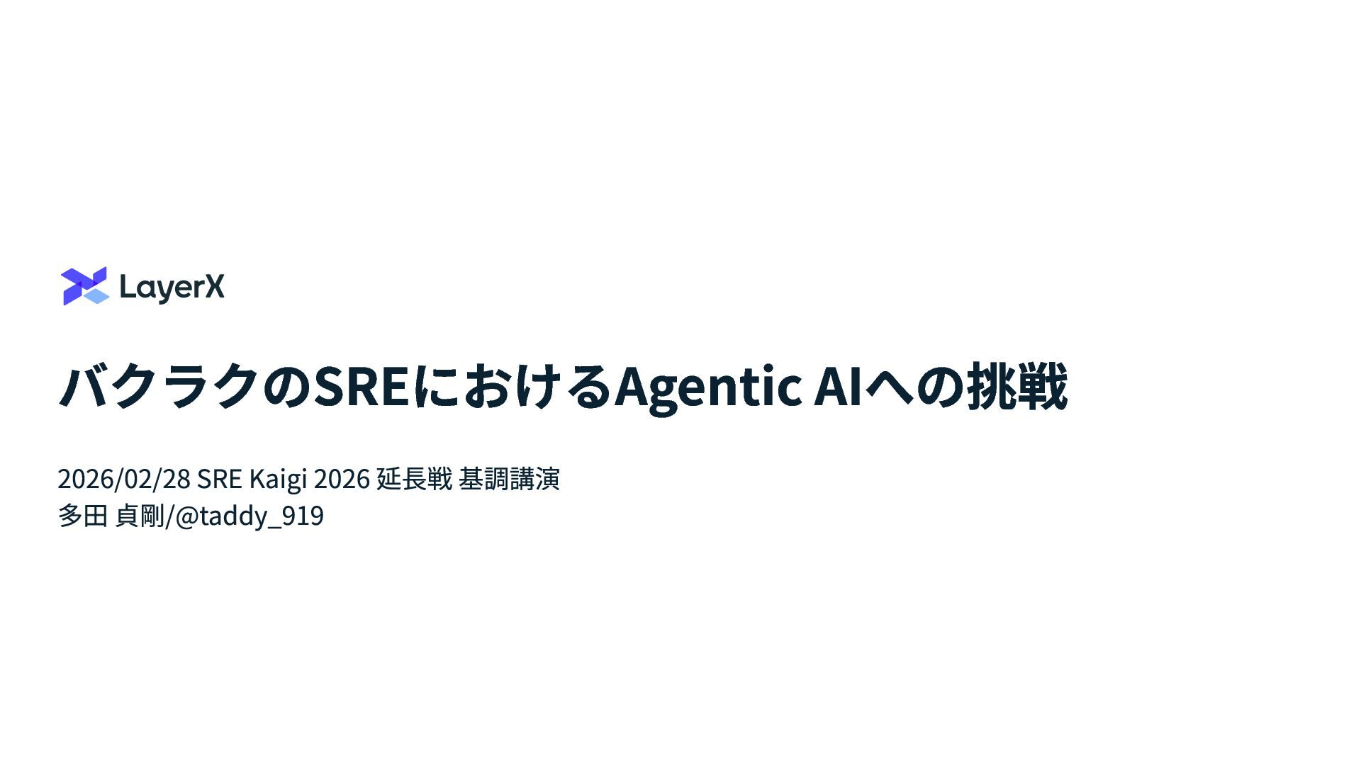 バクラクのSREにおけるAgentic AIへの挑戦 2026/02/28 SRE Kaigi 2026 延長戦 基調講演 多田 貞剛/@taddy_919