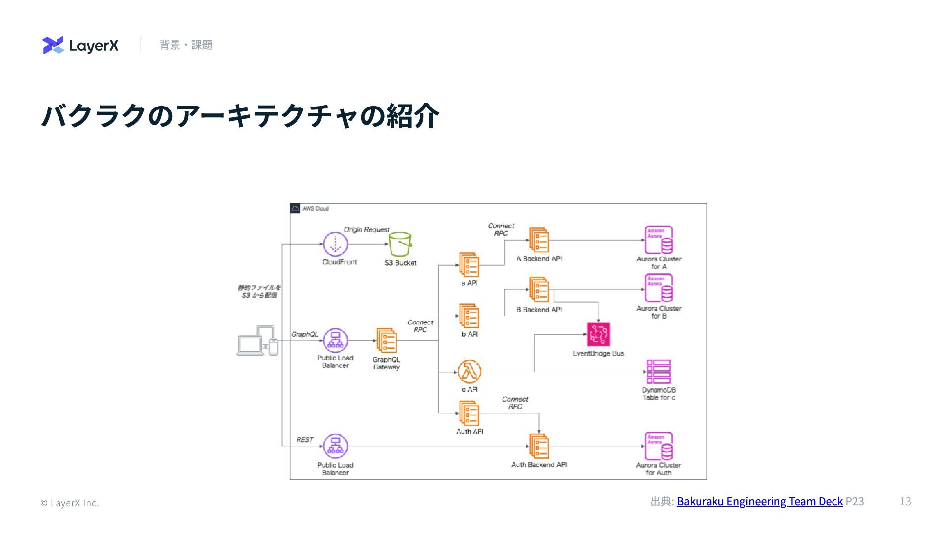 バクラクのアーキテクチャの紹介 © LayerX Inc. 背景・課題 出典: Bakuraku Engineering Team Deck