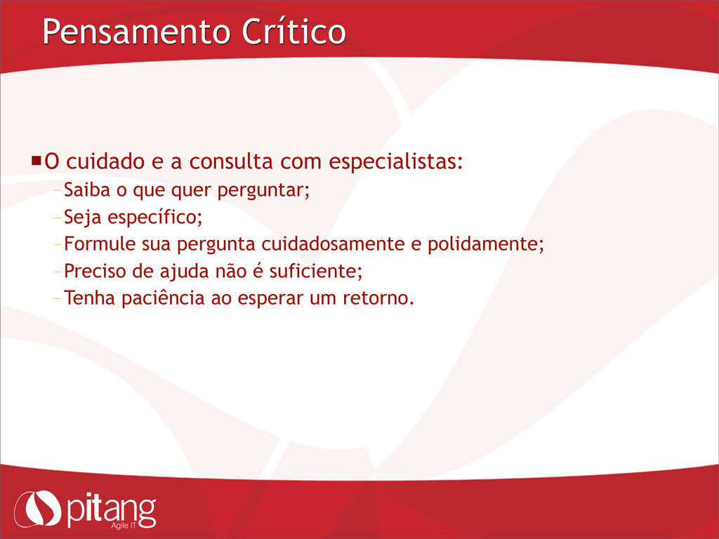 Saiba o que quer perguntar; – Seja específico; – Formule sua pergunta cuidadosamente e polidamente; – Preciso de ajuda não é suficiente; – Tenha paciência ao esperar um retorno.