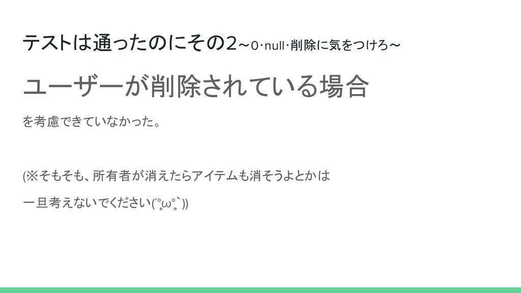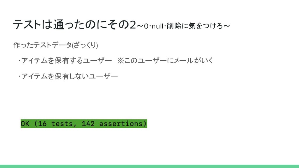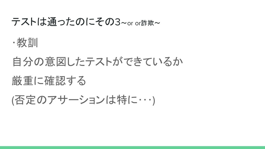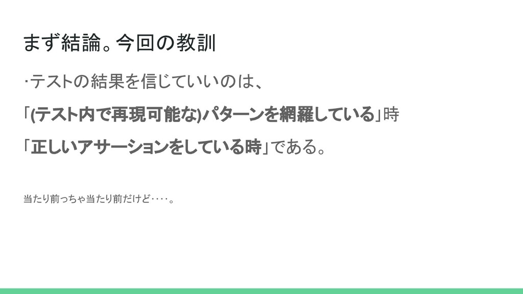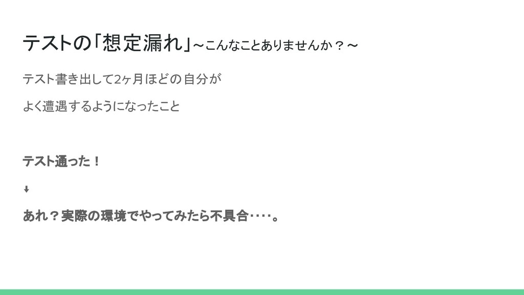 テストを書いて2ヶ月、エンジニアになって4ヶ月の初心者です。 テスト書き出して、自分の想定が甘いことで 「テストは通った!けど、、実際に試したらエラーになった」ということが頻発しました。 その際の知見をまとめたので、よければ御覧ください。