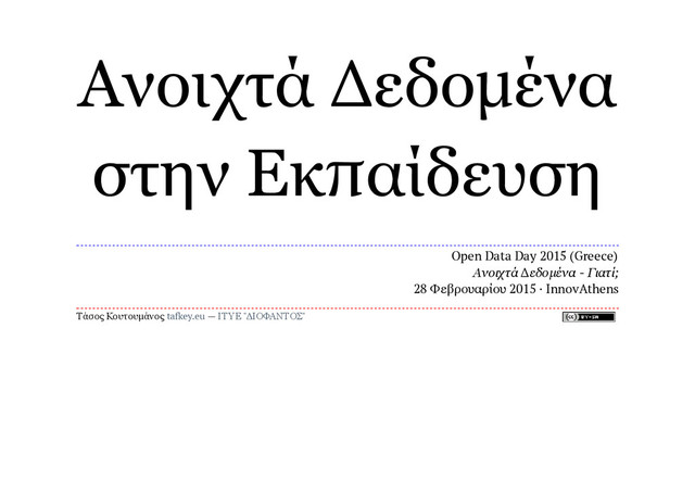 Πλήρης έκδοση παρουσίασης και σύνοψη εργαστηρίου: http://tafkey.github.io/odd15gr_edu