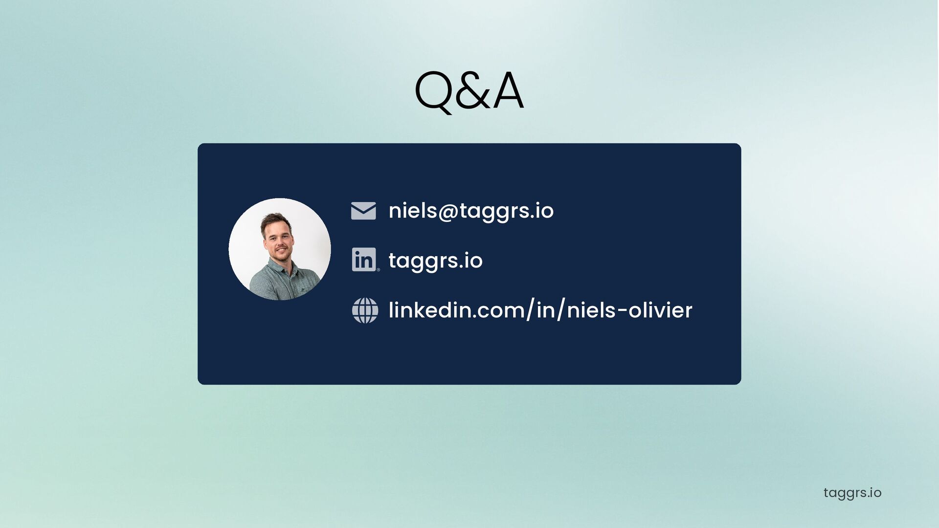 taggrs.io linkedin.com/in/niels-olivier taggrs.io Q&A