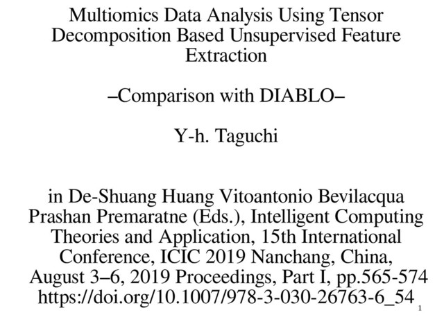 ormatted as matrices with different sizes. In this paper, I propose the usage of tensor decomposition based unsupervised feature extraction as a data mining tool for multiomics data set. It can successfully integrate miRNA expression, mRNA expression and proteome, which were used as a demonstration example of DIABLO that is the recently proposed advanced method for the integrated analysis of multiomics data set.