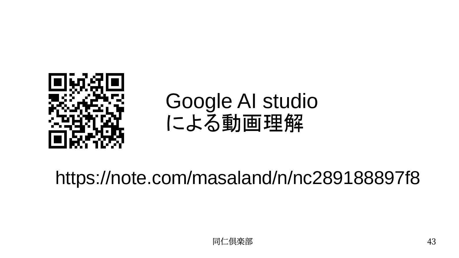 同仁倶楽部 43 https://note.com/masaland/n/nc289188897f8 Google AI studio による動画理解