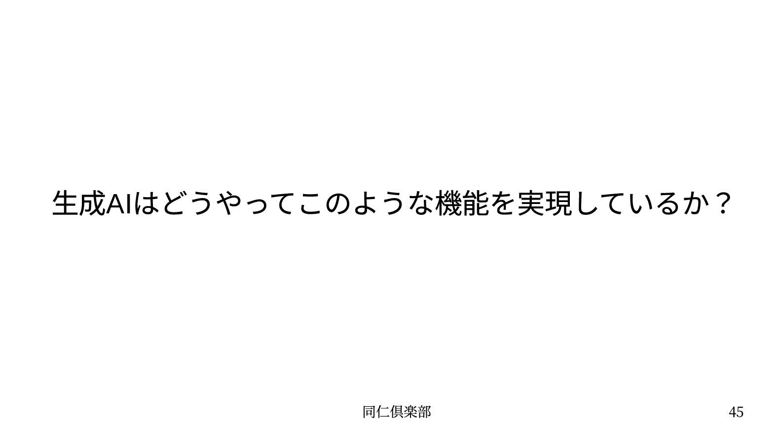 同仁倶楽部 45 生成AI はどうやってこのような機能を実現しているか?