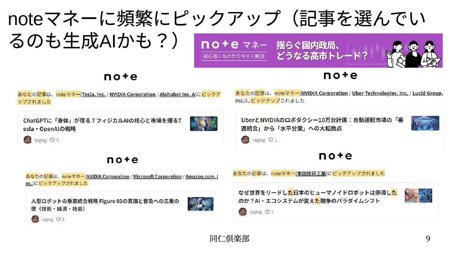 同仁倶楽部 9 note マネーに頻繁にピックアップ(記事を選んでい るのも生成AI かも?)