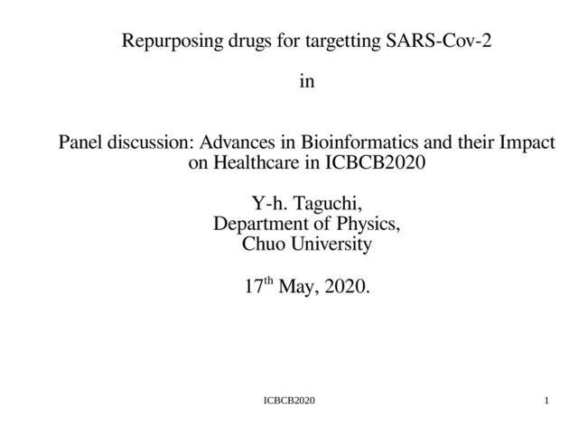 good opportunity to demonstrate the usefulness of Bioinformatics that can attack “real” problem! Huge number of SBDD, LBDD and gene expression based DD have been proposed. Cloud intelligence has started to be effective. In near future, bioinfomatics will be not negligible tools for repurposing drugs toward the various diseases, including those targeting pandemic.