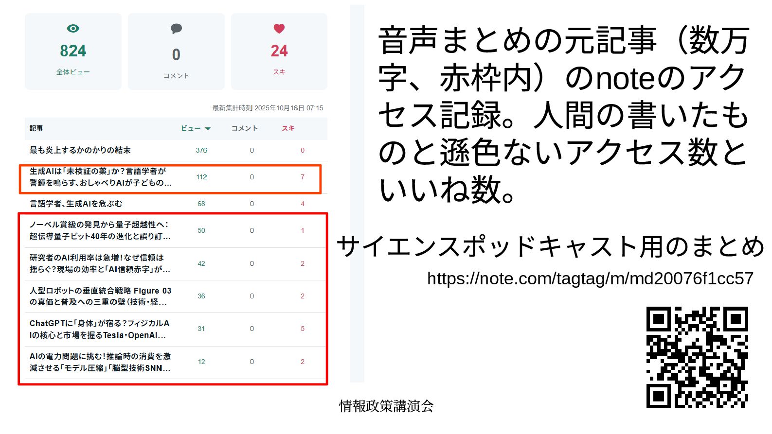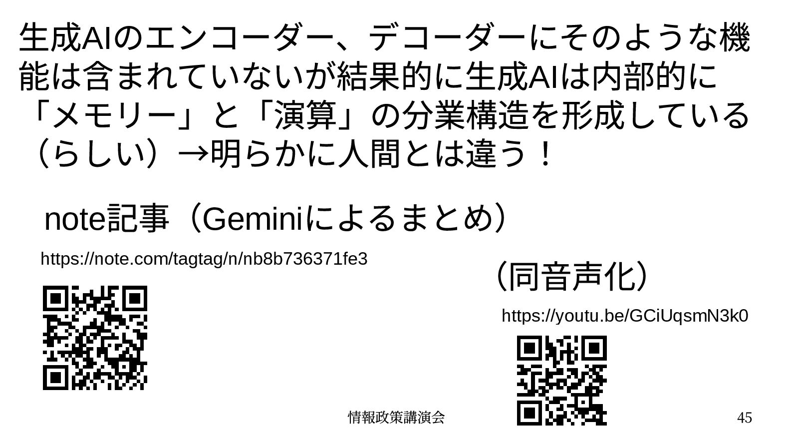 Geiminiによるまとめ https://docs.google.com/document/d/1KZgEt8mwMqSsuoBmywMNkXyqGsRQzIH17wNACEd-jTg/edit?usp=sharing 音声化 https://youtu.be/7cFSP3sRw74