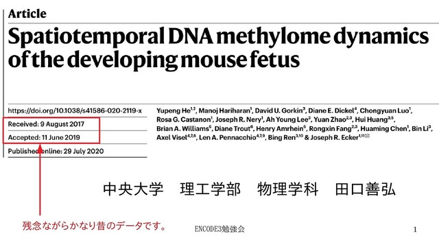 ENCODE3勉強会勉強会 1 中央大学 理工学部 物理学科 田口善弘 残念ながらかなり昔ながらかなり昔のデータです昔のデータです。のデータです。データです。です。