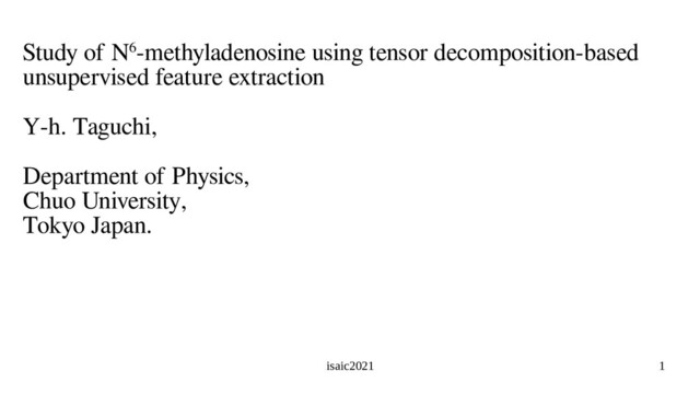 the following two papers Taguchi, Y.-h.; Dharshini, S.A.P.; Gromiha, M.M. Identification of Transcription Factors, Biological Pathways, and Diseases as Mediated by N6-methyladenosine Using Tensor Decomposition-Based Unsupervised Feature Extraction. Appl. Sci. 2021, 11, 213. https://doi.org/10.3390/app11010213 Roy, S.S., Taguchi, YH. Identification of genes associated with altered gene expression and m6A profiles during hypoxia using tensor decomposition based unsupervised feature extraction. Sci Rep 11, 8909 (2021). https://doi.org/10.1038/s41598-021-87779-7