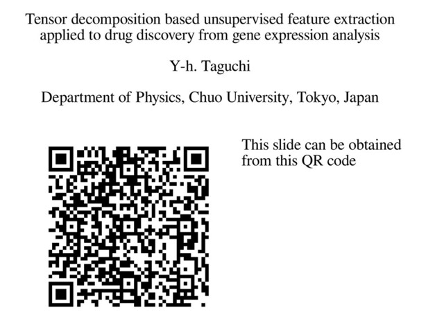 with data of “dose density(i) ⨉ compounds(j) ⨉ gene(l)” → Tensors can be decomposed. x ijl G u k1i u k2j u k3l x ijl ≒ΣΣ k1,k2,k3 G k1,k2,k3 u k1i u k2j u k3l gene compounds dose density compounds dose density gene