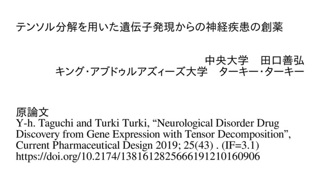 TAF7, KAT2A, SPI1, RELA, TAF1, PML → アル分解を用いた遺ツハイマーに最も大きな影響関係 401遺伝子を用いた遺伝子発標的とするmiRNA “miRTarBase 2017” hsa-miR-320a, hsa-miR-1260b, hsa-miR-652-3p, hsa-miR-744-5p, hsa-miR-16-5p, hsa-miR-100-5p, hsa-miR-615-3p, hsa-miR-484, hsa-miR-296-3p, hsa-miR-423-5p → アル分解を用いた遺ツハイマーに最も大きな影響関係