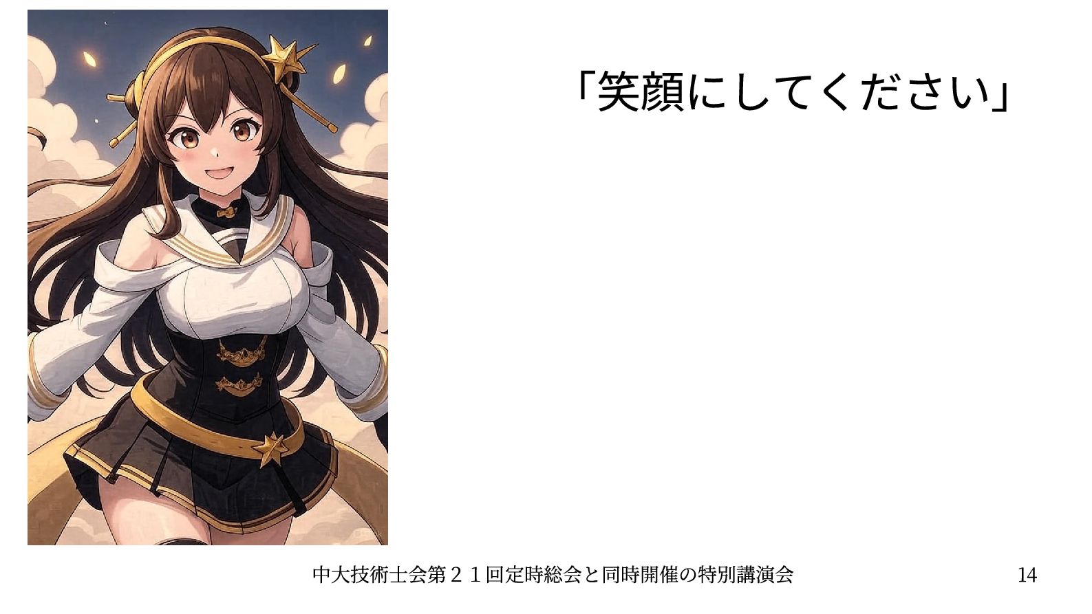 中大技術士会第21回定時総会と同時開催の特別講演会 14 「笑顔にしてください」