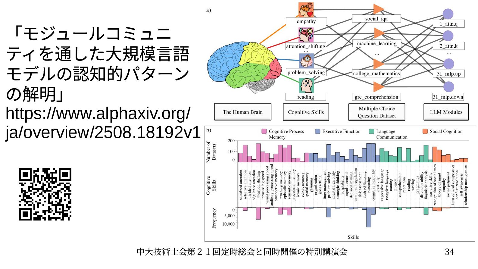 中大技術士会第21回定時総会と同時開催の特別講演会 34 「モジュールコミュニ ティを通した大規模言語 モデルの認知的パターン の解明」 https://www.alphaxiv.org/ ja/overview/2508.18192v1