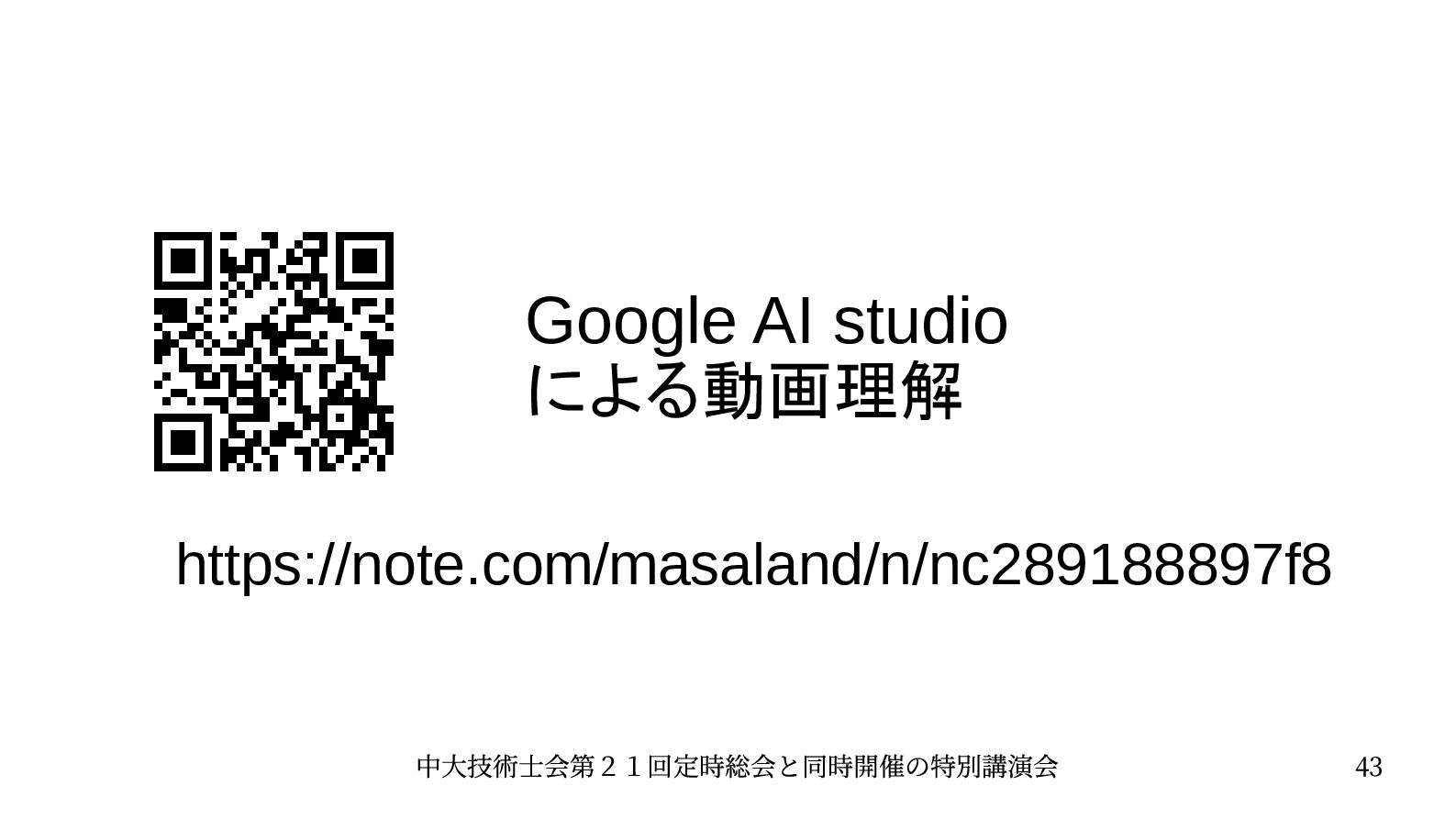 中大技術士会第21回定時総会と同時開催の特別講演会 43 https://note.com/masaland/n/nc289188897f8 Google AI studio による動画理解