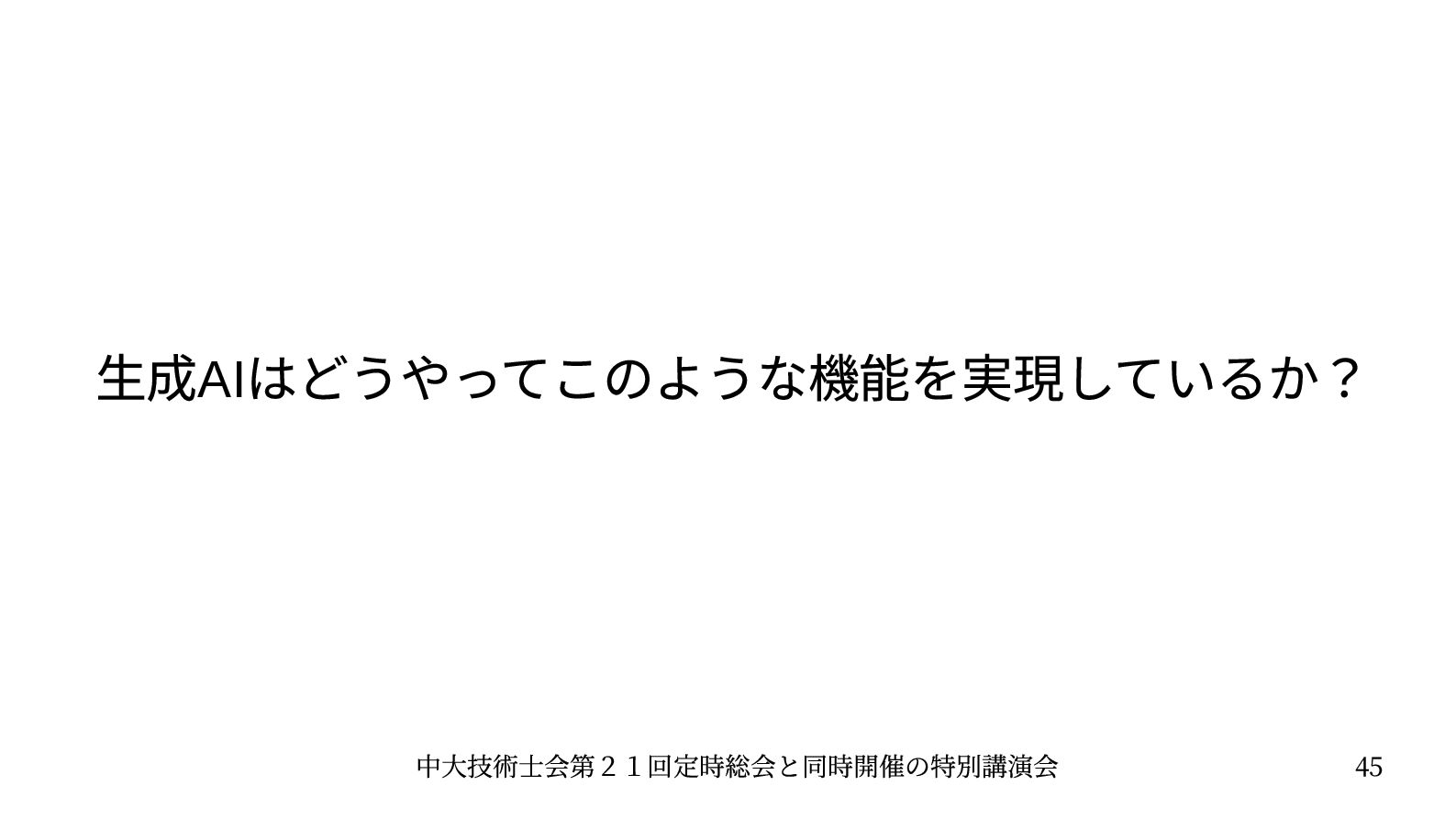 中大技術士会第21回定時総会と同時開催の特別講演会 45 生成AI はどうやってこのような機能を実現しているか?