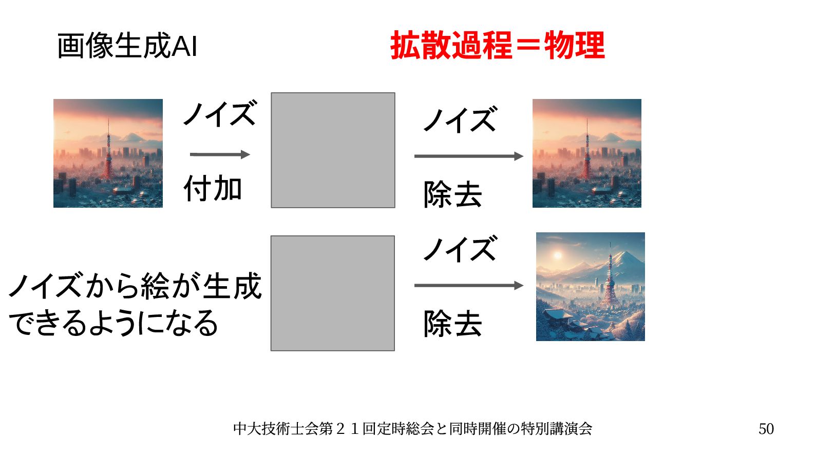 中大技術士会第21回定時総会と同時開催の特別講演会 50 ノイズ 除去 ノイズ 付加 ノイズ 除去 ノイズから絵が生成 できるようになる