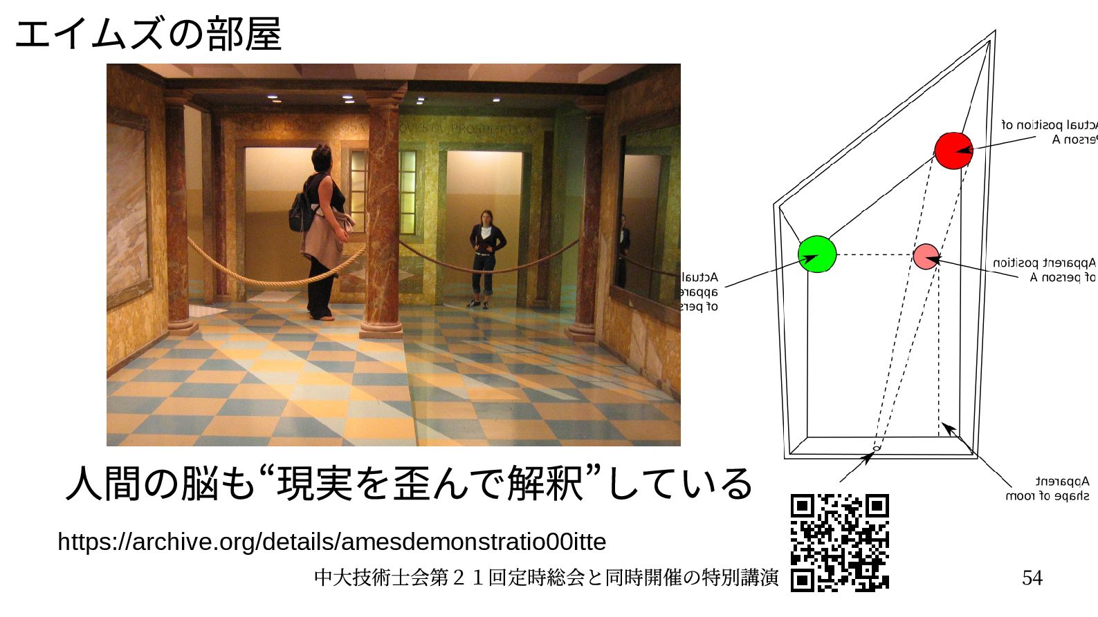 中大技術士会第21回定時総会と同時開催の特別講演会 54 エイムズの部屋 人間の脳も“現実を歪んで解釈”している https://archive.org/details/amesdemonstratio00itte
