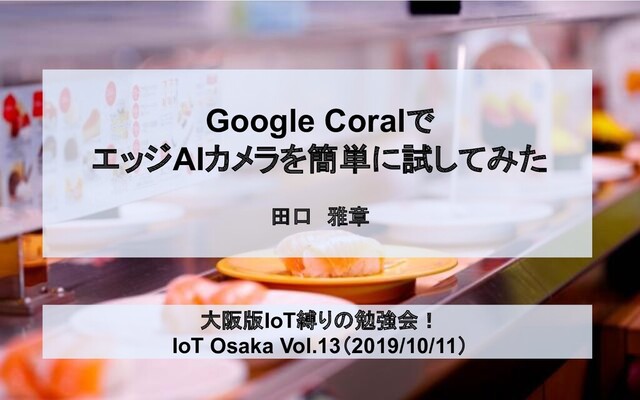 Google Coralで エッジAIカメラを簡単に試してみた 田口 雅章 大阪版IoT縛りの勉強会! IoT Osaka Vol.13(2019/10/11)
