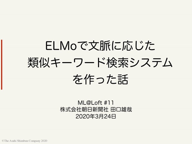 Devlin+19, BERT: Pre-training of Deep Bidirectional Transformers for Language Understanding, NAACL2019 [3] Shen+18, Baseline Needs More Love: On Simple Word- Embedding-Based Models and Associated Pooling Mechanisms, ACL2018 ©The Asahi Shimbun Company 2020