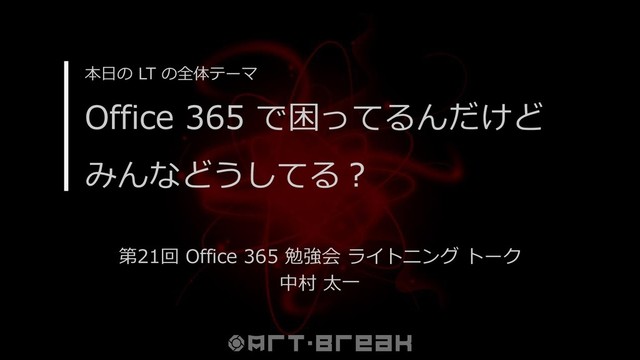本日の LT の全体テーマ Office 365 で困ってるんだけど みんなどうしてる? 第21回 Office 365