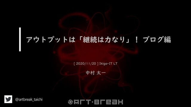 アウトプットは「継続は力なり」! ブログ編 [ 2020/11/20 ] Ikiga-IT LT 中村 太一 @artbreak_taichi
