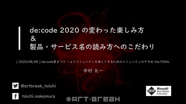 de:code 2020 の変わった楽しみ方 & 製品・サービス名の読み方へのこだわり [ 2020/08/08 ] de:code夏まつり ~よりコミュニティを楽しくするためのコミュニティのすすめ