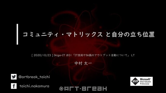コミュニティ・マトリックス と自分の立ち位置 [ 2020/10/23 ] Ikiga-IT #01「IT技術や知識のアウトプット活動について」 LT 中村 太一