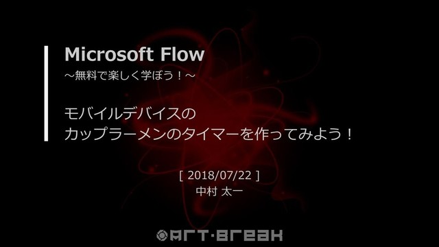 [ 2018/07/22 ] 中村 太一 Microsoft Flow ~無料で楽しく学ぼう!~ モバイルデバイスの カップラーメンのタイマーを作ってみよう!