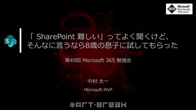 「 SharePoint 難しい」ってよく聞くけど、 そんなに言うなら8歳の息子に試してもらった 中村 太一 Microsoft MVP 第45回 Microsoft