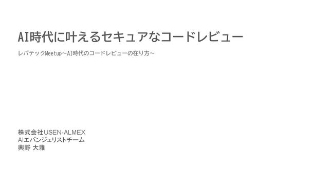 AI時代に叶えるセキュアなコードレビュー レバテックMeetup~AI時代のコードレビューの在り方~ 株式会社USEN-ALMEX AIエバンジェリストチーム 興野 大雅