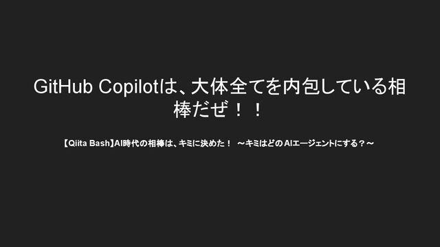 GitHub Copilotは、大体全てを内包している相 棒だぜ!! 【Qiita Bash】AI時代の相棒は、キミに決めた! 〜キミはどのAIエージェントにする?〜